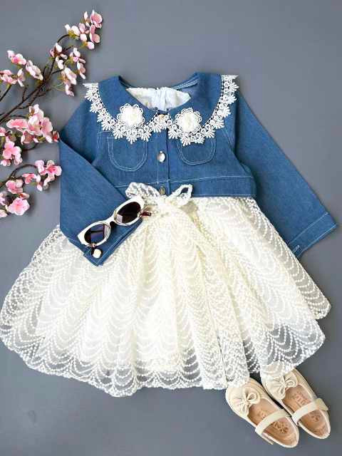 پیراهن دوتیکه دخترانه جین و دانتل عیدانه