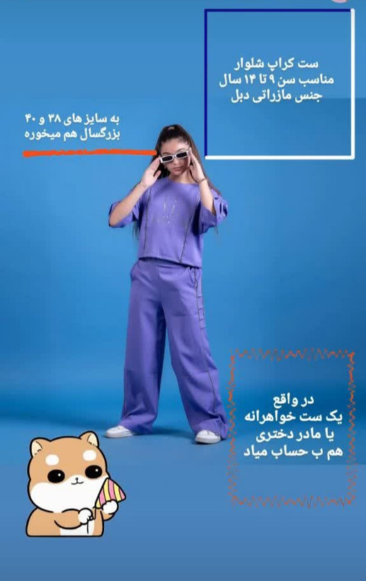 سایز ۲✨قدکراپ ۴۳،پهنا کراپ ۵۷،قدشلوار ۸۶